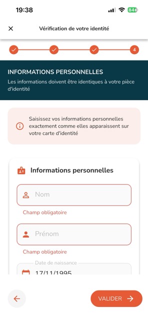 C’est la dernière étape du processus de vérification. Renseigne tes informations personnelles :