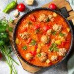 Découvrez la Chakchouka : un plat chaleureux originaire du Maghreb, composé de poivrons, tomates et œufs mijotés à la perfection.
